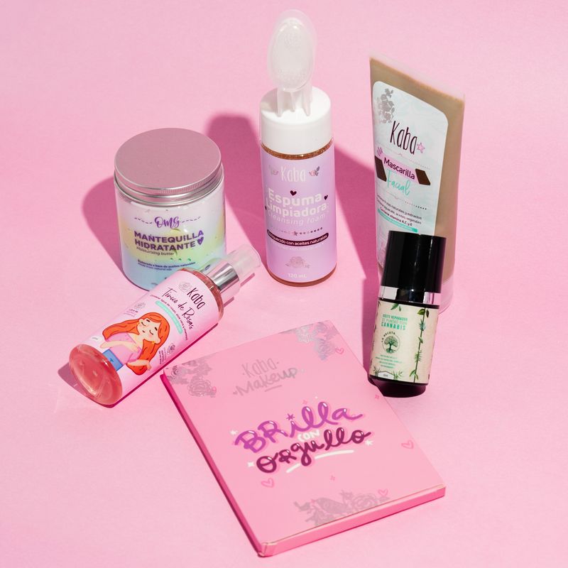 Incluye: 1 Espuma Limpiadora, 1 Aceite Reparador de Puntas, 1 Tónico de Rosas, 1 Mascarilla Facial Chocolate, 1 Mantequilla Hidratante OMG, 1 Espejo Kaba Makeup de obsequio, 1 Postal Especial, 1 Tarjeta De/Para, 1 Cosmetiquera.